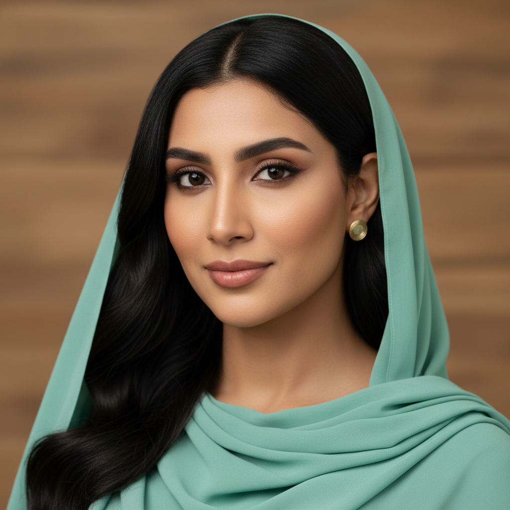 מודל אישה בצילום ביוטי: בד רך וזורם בגוון ירוק-מנטה מעודן, עגילים קטנים מזהב מט; רקע עם טקסטורת עץ בהיר מלוטש ומטושטש, תאורת סטודיו רכה וממוקדת שמבליטה תווי פנים, אווירה שלווה ואלגנטית.התמונה תכיל רק אדם אחד.